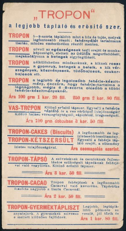 cca 1900-1910 ,,Tropon" tápláló és erősítő szer számolócédula https://www.darabanth.com/de/446-Fernauktion/446.0/Kunst-Dokumente-andere-Sammelgebiete/Werbungen~500024/cca-1900-1910-Tropon-taplalo-es-erosito-szer-szamolocedula~II2955631