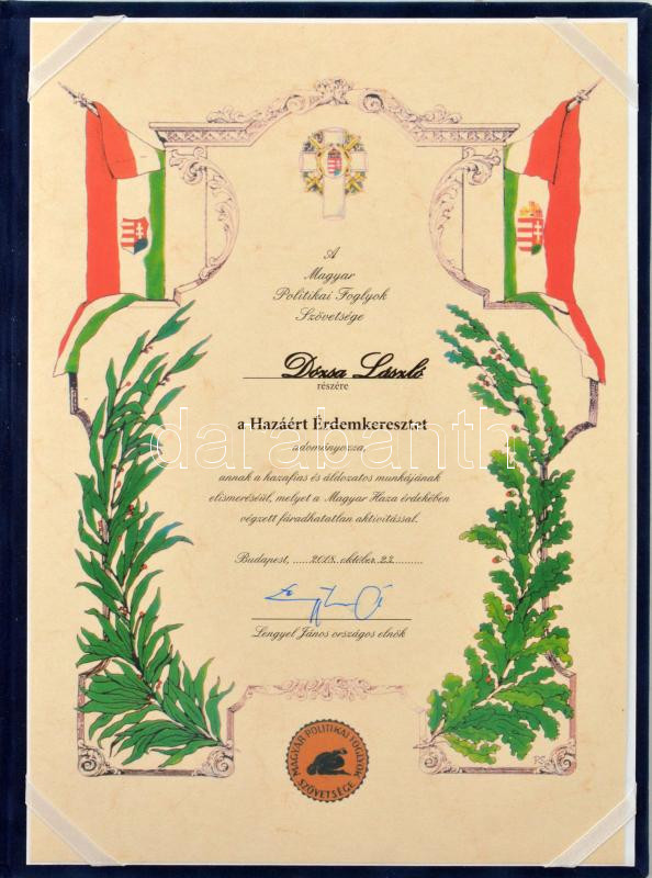 2018. "Magyar Politikai Foglyok Szövetsége - A Hazáért érdemkereszt" k... https://www.darabanth.com/de/446-Fernauktion/446.0/Numismatik/Faleristik-Auszeichnungen-Medaillen-Orden~1500022/2018-Magyar-Politikai-Foglyok-Szovetsege-A-Hazaert-erdemkereszt-kituntetes-nevre-szolC3~II2954128