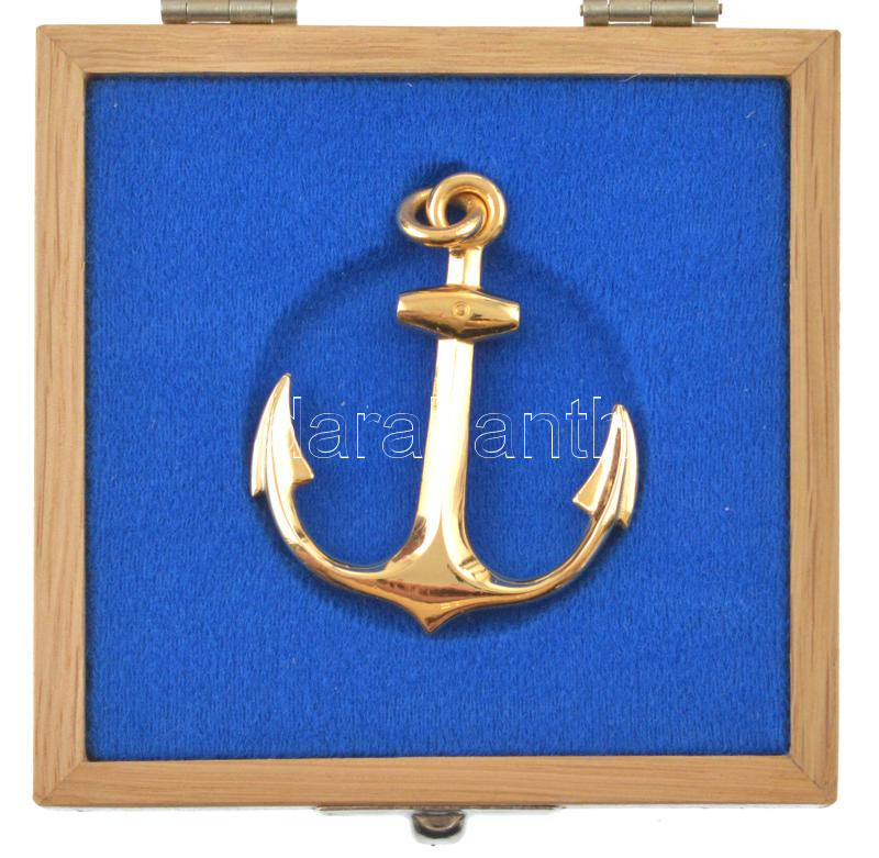 Beschreibung: DN aranyozott horgony medál fa dísztokban (46x56mm) T:AU