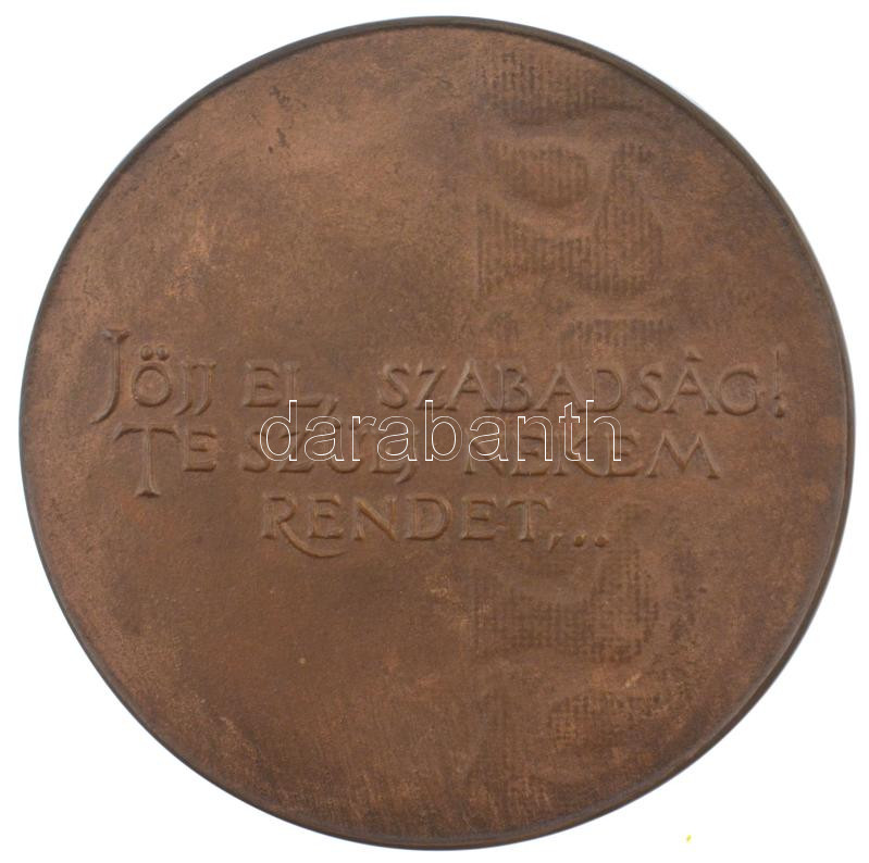 Beschreibung: Gáti Gábor (1937-) 1980. "Felszabadulásunk 35. évfordulójára 1945-1980 / 'Jöjj el szabadság! Te szülj nekem rendet...' " bronz emlékplakett (99mm) T:AU