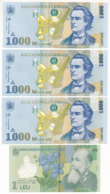 Beschreibung: Románia 1998. 1000L (3x) + 2005. 1L T:UNC,AU