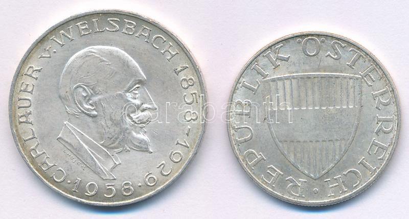 Ausztria 1958. 25Sch Ag "Carl Auer v. Welsbach" + 1972. 10Sch Ag T:XF