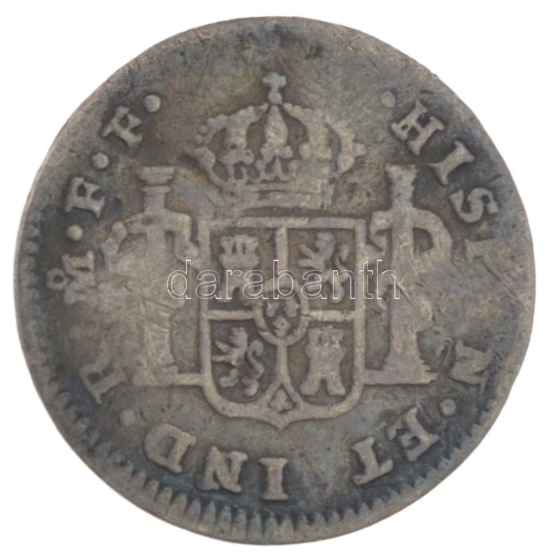 Beschreibung: Mexikó 1779. 1/2R Ag "III. Károly" (1,59g) T:F ü., hajlott lemez