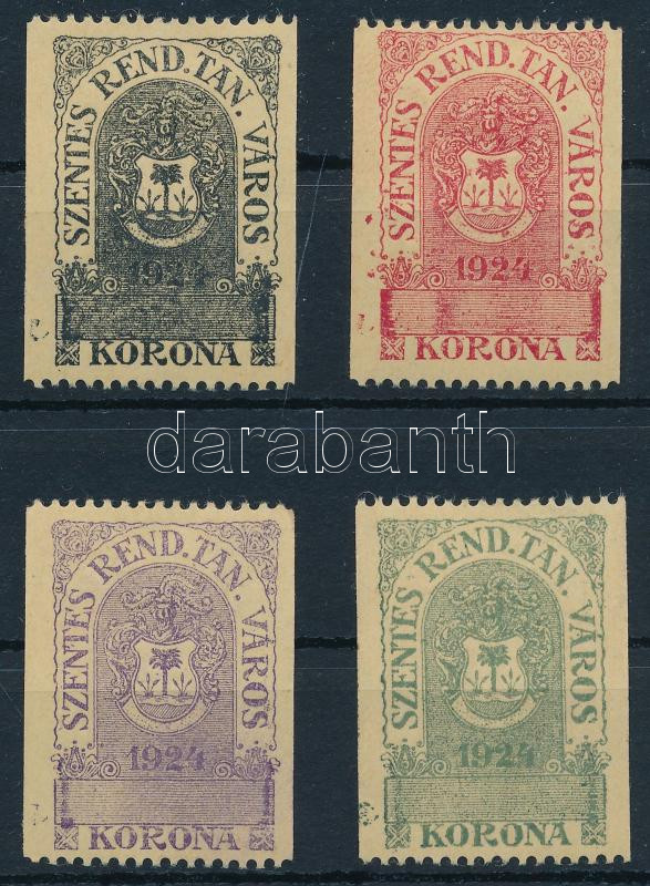 1924 Szentes városi bélyegek 4 különböző színben, értékjelzés nélkül (... https://www.darabanth.com/de/446-Fernauktion/446.0/Philatelie-und-Postgeschichte-Ungarn/Stempelmarken~500019/1924-Szentes-varosi-belyegek-4-kulonbozo-szinben-ertekjelzes-nelkul-8000~II2955212