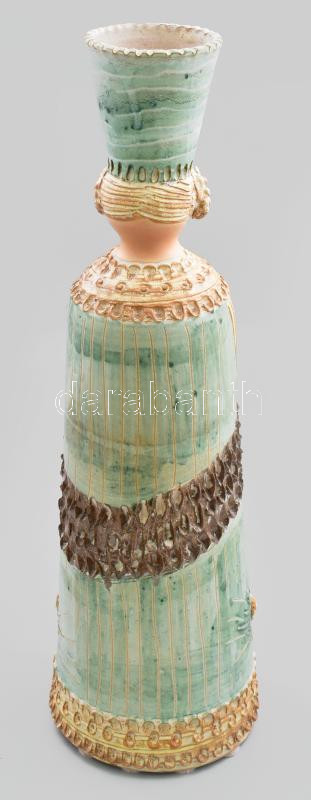 Beschreibung: Kiss Roóz Ilona (1920-2010): Lány, magas süveggel. Nagy méretű mázas kerámia, jelzett, hibátlan m: 56 cm