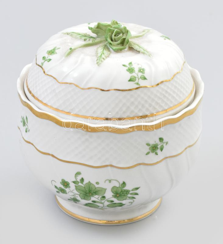 Hollóházi zöld virágmintás bonbonier, plasztikus mintával díszítve, je... https://www.darabanth.com/de/446-Fernauktion/446.0/Porzellan-Keramik-Glass/Porzellan~500006/Hollohazi-zold-viragmintas-bonbonier-plasztikus-mintaval-diszitve-jelzessel-kopassal-m~II2951809