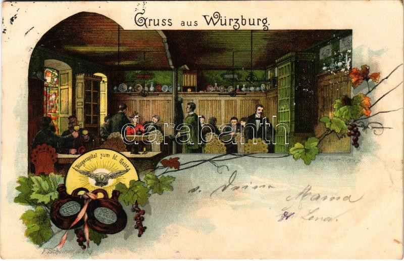 1898 (Vorläufer) Würzburg, Bürgerspital zum hl. Geist / restaurant int... https://www.darabanth.com/de/447-Fernauktion/447.0/Ansichtskarten/Deutschland~2000039/1898-Vorlaufer-Wurzburg-Burgerspital-zum-hl-Geist-restaurant-interior-F-Scheiner-Art-Nouv~II2961101