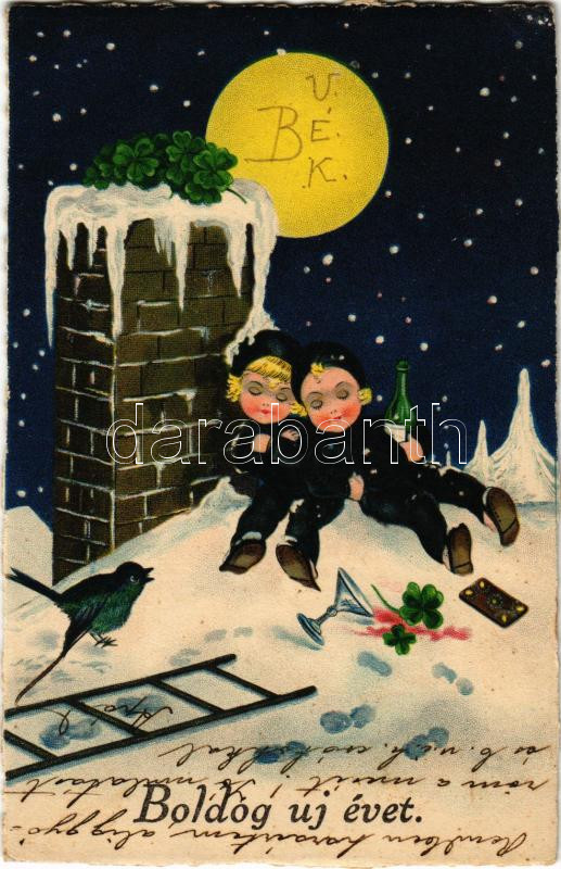1934 Boldog Újévet / New Year greeting art postcard with drunk chimney... https://www.darabanth.com/de/447-Fernauktion/447.0/Ansichtskarten/GruC39Fkarten-Feste~2000085/1934-Boldog-Ujevet-New-Year-greeting-art-postcard-with-drunk-chimney-sweepers-on-the-roof-EK~II2963886