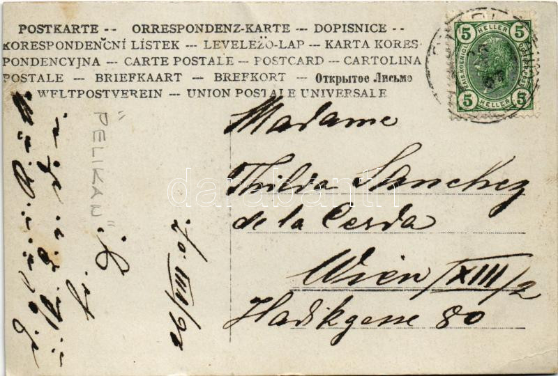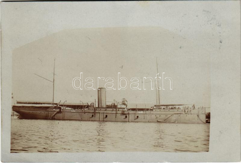 1907 SMS PELIKAN az Osztrák-Magyar Haditengerészet parancsnoki yachtja és torpedó-raktárhajója / SM Schiff "Pelikan" Torpedodepotschiff und Admiralsyacht. K.u.K. Kriegsmarine / Austro-Hungarian Navy, SMS Pelikan admiral's yacht and torpedo depot ship. photo - Addressed to Hilda Sánchez de la Cerda in Wien