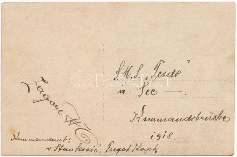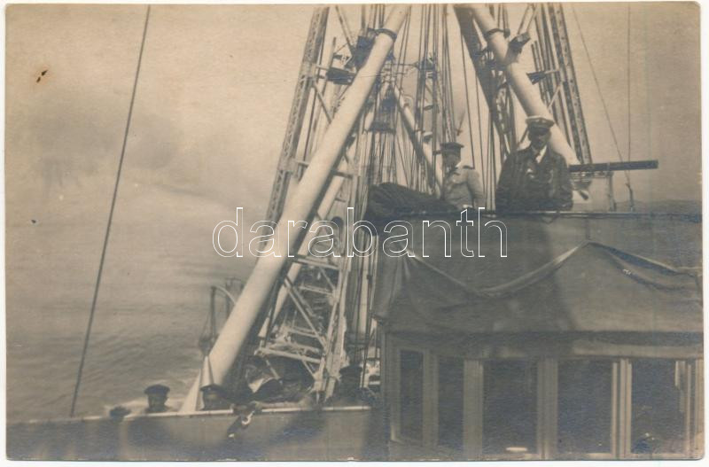 1918 SMS TEODO osztrák-magyar haditengerészet szénszállító hajó és kapitánya / K.u.K. Kriegsmarine Kohlendampfer, Kommandobrücke, Fregattenkapitän von Stankovic / Austro-Hungarian Navy collier, captain on the bridge. photo
