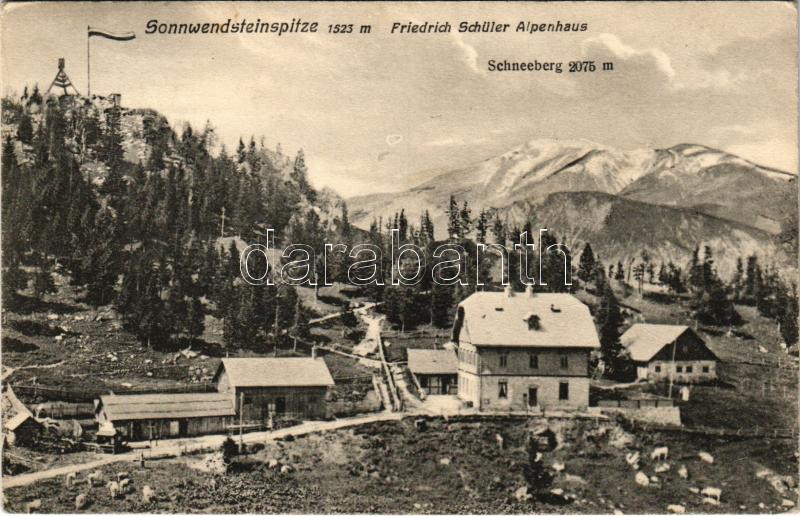 Beschreibung: Sonnwendsteinspitze, Friedrich Schüler Alpenhaus, Schneeberg / alpine tourist house, chalet (EK)