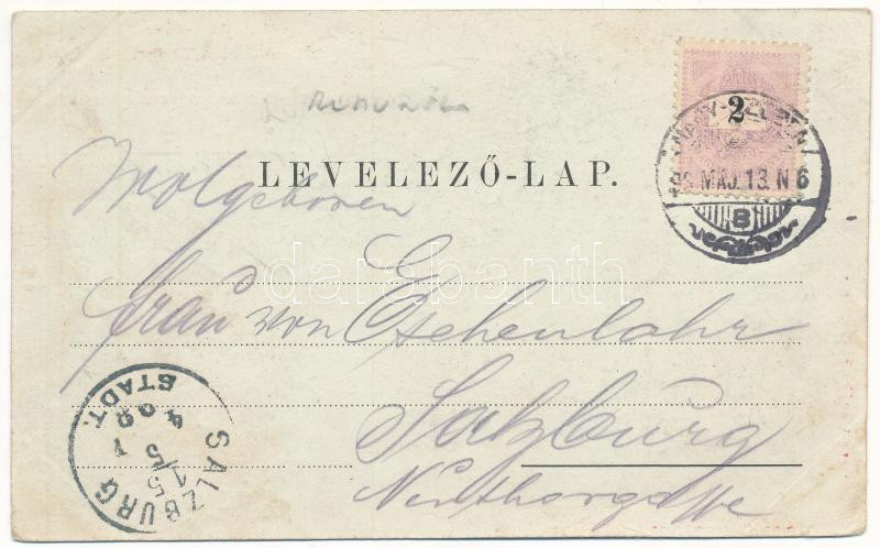 1898 (Vorläufer) Nagyszeben, Hermannstadt, Sibiu; Gruss aus dem Siebenbürger Sachsenlande, Sächsische Ehepaar und Bauernstube / Erdélyi szász folklór, házaspár és parasztház belső. G.A. Seraphin / Transylvanian Saxon folklore. Art Nouveau, floral (ázott / wet damage)