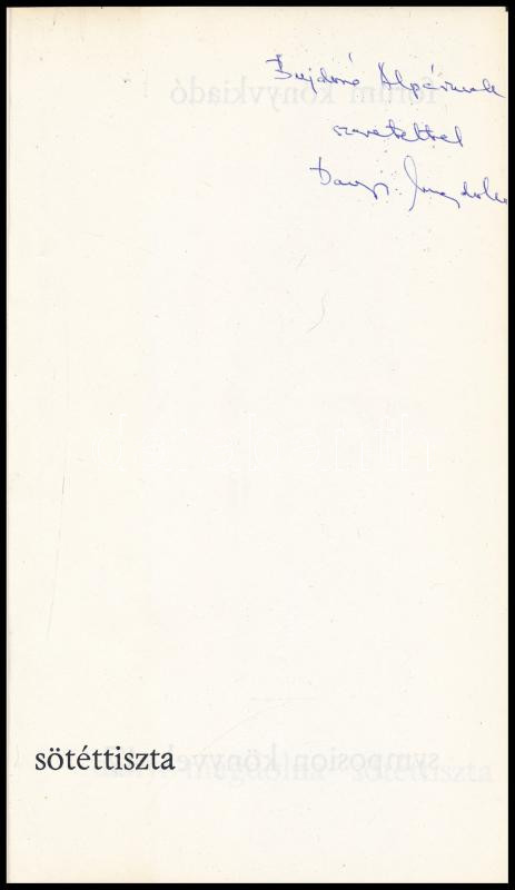 Danyi Magdolna: Sötéttiszta. A szerző, Danyi Magoldna (1950-2012) vajdasági magyar költő, irodalomtörténész által Bujdosó Alpár (1935-2021) költő, mérnök, a Magyar Műhely szerkesztője a magyar avantgarde kiemelkedő alakja részére DEDIKÁLT példány. Symposion 47. Újvidék, 1975, Forum. Első kiadás. A szerző, első nyomtatásban megjelent műve. Kiadói papírkötés.
