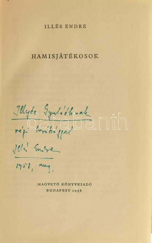 Illés Endre: Hamisjátékosok. DEDIKÁLT! Bp., 1958, Magvető. Kiadói egés... https://www.darabanth.com/de/447-Fernauktion/447.0/Bucher/Bucher-Andere-kuriositaten~1500027/Illes-Endre-Hamisjatekosok-DEDIKALT-Bp-1958-Magveto-Kiadoi-egeszvaszon-kotes-serC3~II2962327