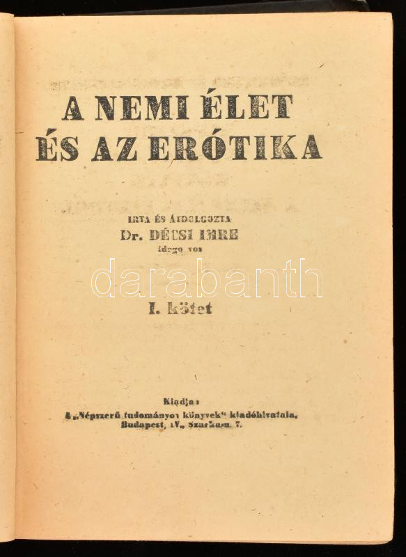 Dr. Décsi Imre: A nemi élet és az erotika. I-IV. köt. [Egy kötetben]. ... https://www.darabanth.com/de/447-Fernauktion/447.0/Bucher/Bucher-Naturwissenschaft-Medizin~1500017/Dr-Decsi-Imre-A-nemi-elet-es-az-erotika-I-IV-kot-Egy-kotetben-Egeszseges-es-beteg-sz~II2958939