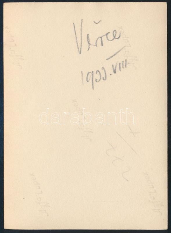 Beschreibung: 1933 Kinszki Imre (1901-1945) budapesti fotóművész hagyatékából, jelzés nélküli vintage fotó, a szerző által feliratozva (Verőce), 9x6,5 cm