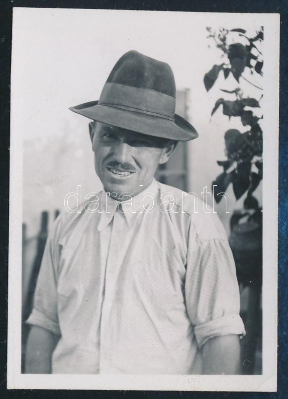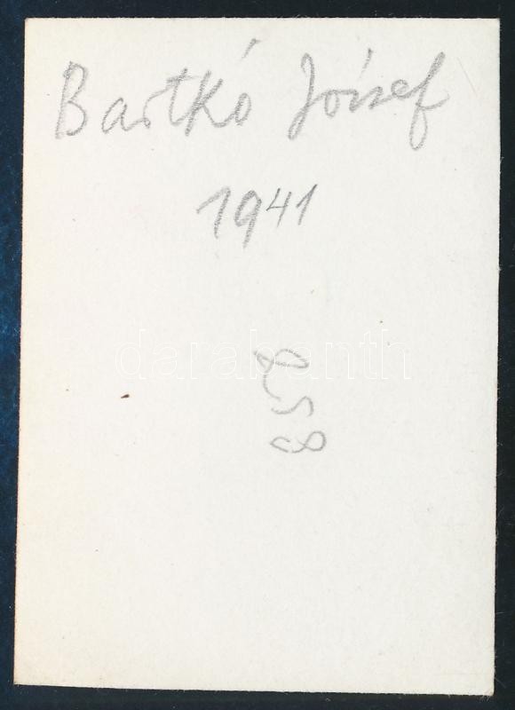 1941 Kinszki Imre (1901-1945) budapesti fotóművész hagyatékából, jelzés nélküli vintage fotó, a szerző által feliratozva (Batkó József portréja), 6,2x4,3 cm