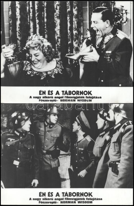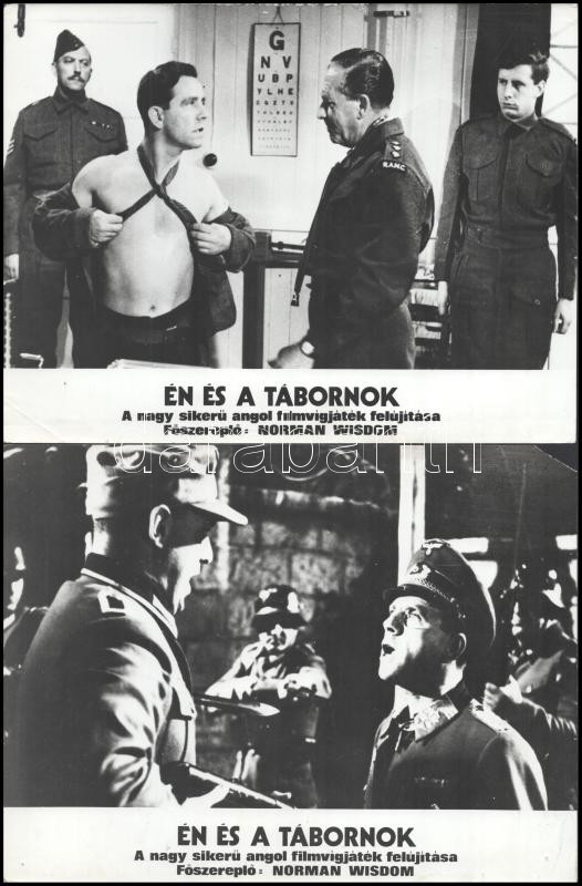 cca 1958 ,,Én és a tábornok" című angol filmvígjáték jelenetei és szereplői (főszereplő Norman Wisdom), 13 db vintage produkciós filmfotó ezüst zselatinos fotópapíron, a használatból eredő (esetleges) kisebb hibákkal, 18x24 cm