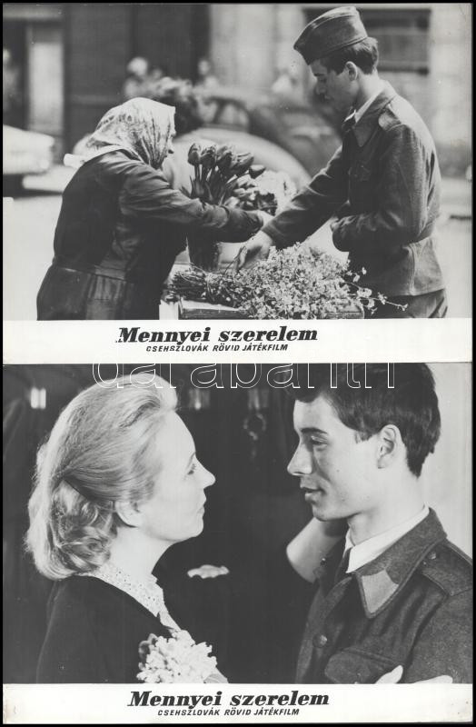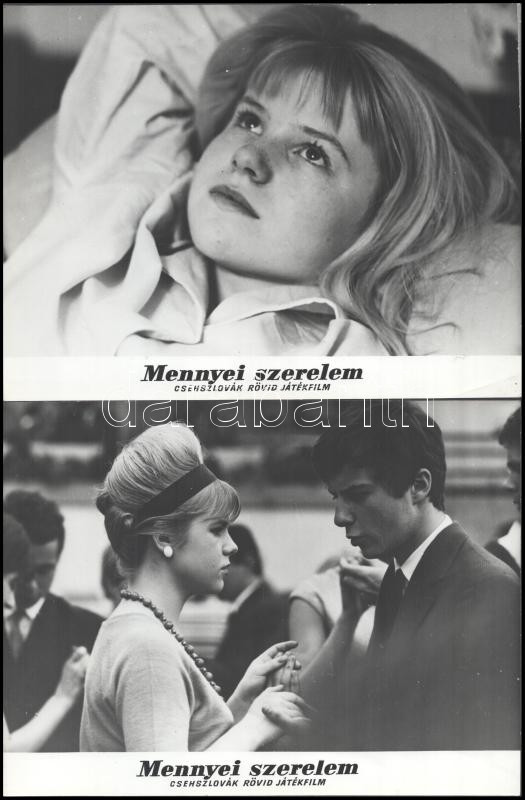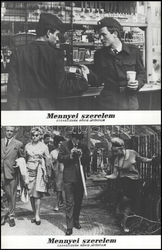 cca 1965 ,,Mennyei szerelem" című csehszlovák rövid játékfilm jelenetei és szereplői, 13 db vintage produkciós filmfotó ezüst zselatinos fotópapíron, a használatból eredő (esetleges) kisebb hibákkal, egy képen elszíneződés, 18x24 cm