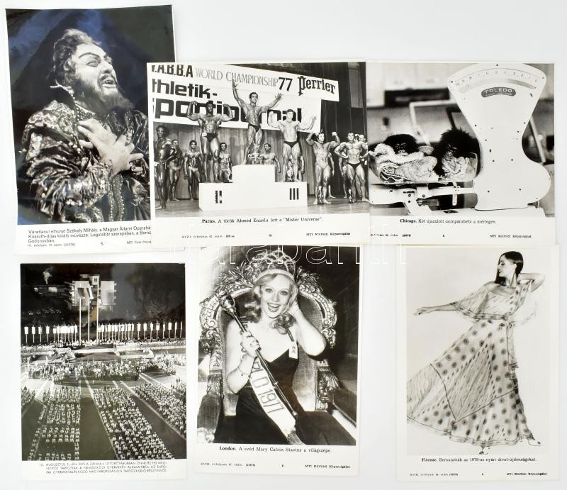 Beschreibung: cca 1970-1980 10 db vegyes MTI fotó (közte vadászat, divat témájúak), 24x18 cm és 27x21 cm között