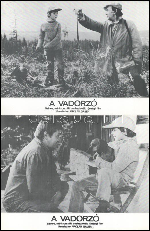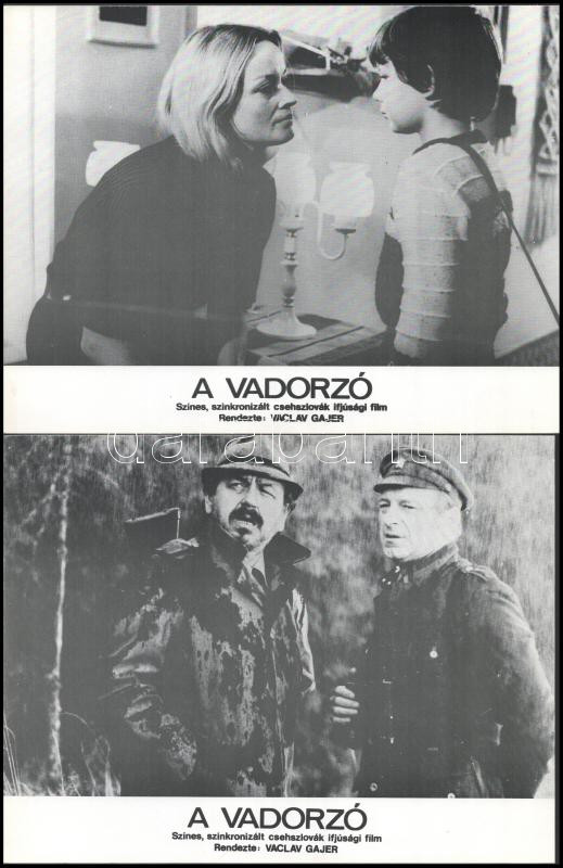 cca 1979 ,,A vadorzó" című csehszlovák film jelenetei és szereplői, 8 db produkciós filmfotó nyomdatechnikával sokszorosítva kartonpapírra, egyoldalas nyomással, a használatból eredő (esetleges) kisebb hibákkal, 18x24 cm