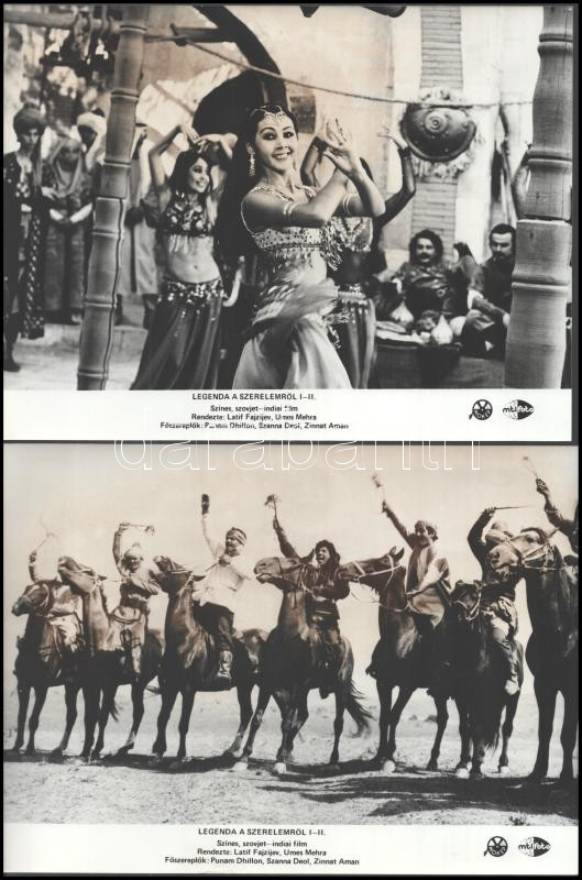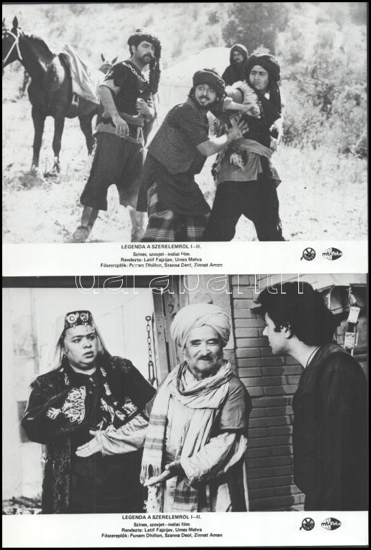 cca 1984 ,,Legenda a szerelemről" című indiai - szovjet kalandfilm jelenetei és szereplői, 7 db vintage produkciós filmfotó ezüst zselatinos fotópapíron, a használatból eredő (esetleges) kisebb hibákkal, három képen elszíneződés, 18x24 cm