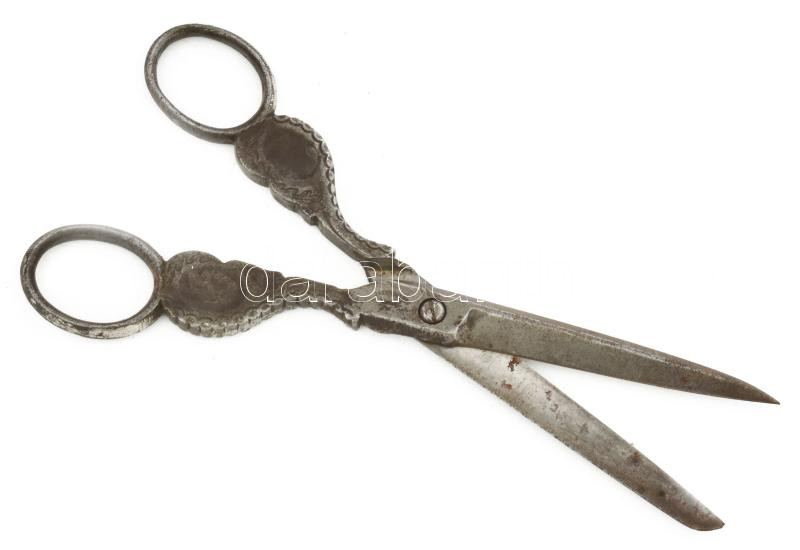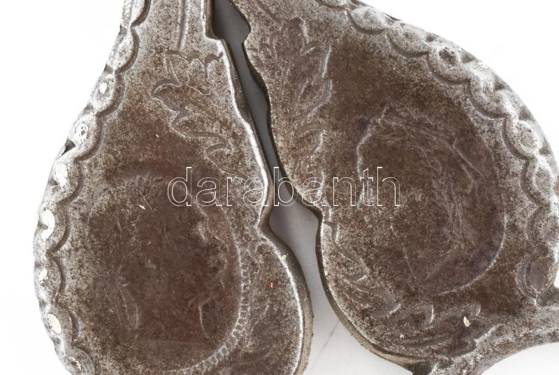 XIX. sz. vége. Solingen Geschmiedet antik olló, Ferenc József és Erzsébet királyné arcképével díszített, jelzett / Vintage paper scissor with the image of Franz Joseph and Sisi