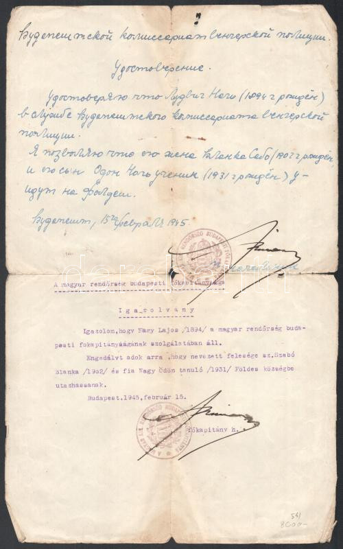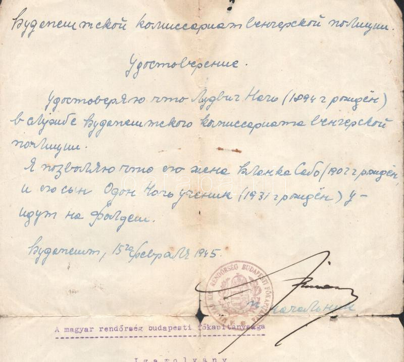 1945 febr. 15. korai magyar-orosz kétnyelvű rendőrségi igazolvány Buda... https://www.darabanth.com/de/447-Fernauktion/447.0/Kunst-Dokumente-andere-Sammelgebiete/Dokument~2000110/1945-febr-15-korai-magyar-orosz-ketnyelvu-rendorsegi-igazolvany-Budapestrol~II2964492