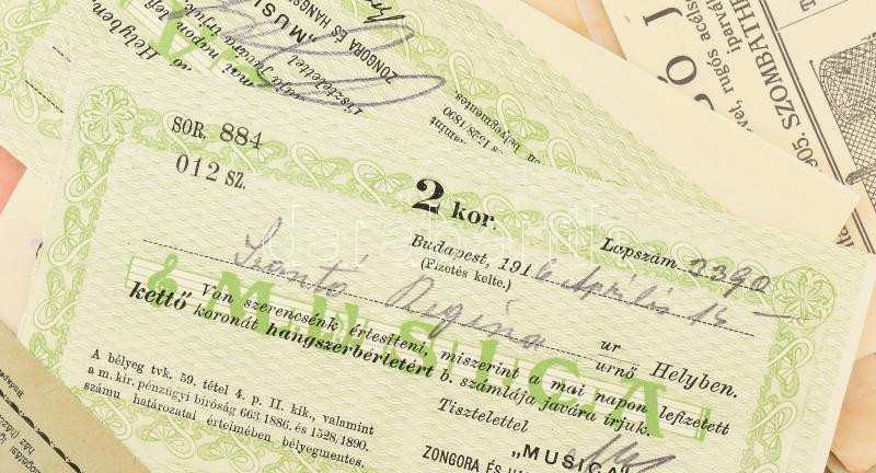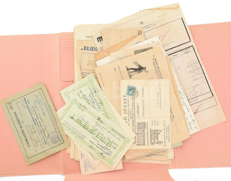 Beschreibung: Vegyes okmány gyűjtemény sok fejléces számla, váltó, reklám kártyák, stb