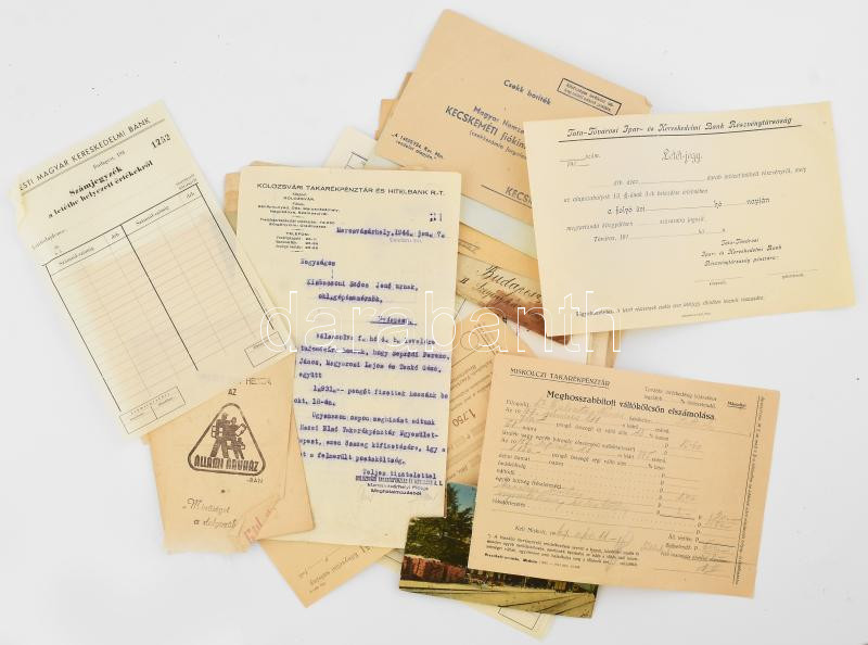 cca 1910-1950 kb. 55 db vegyes okmány, nyomtatvány, boríték tétel, töb... https://www.darabanth.com/de/447-Fernauktion/447.0/Kunst-Dokumente-andere-Sammelgebiete/Dokument~2000110/cca-1910-1950-kb-55-db-vegyes-okmany-nyomtatvany-boritek-tetel-tobbsegeben-banki-reszb~II2964039