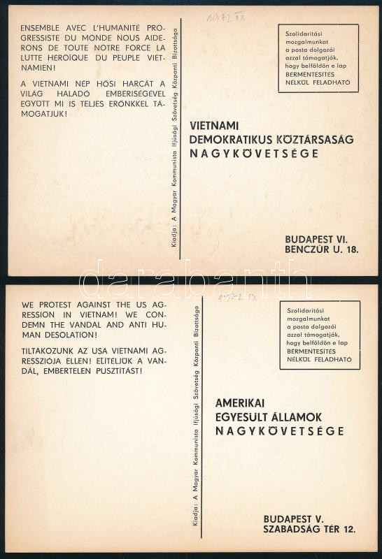 Beschreibung: 1972 Vietnámi háború ellenes 2 db propaganda képeslap