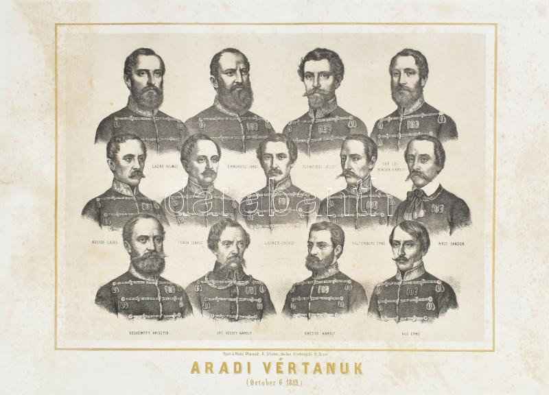 cca 1880 Aradi vértanúk (1849. október 6.), kiadja: Planck Bécs, resta... https://www.darabanth.com/de/447-Fernauktion/447.0/Kunst-Dokumente-andere-Sammelgebiete/Drucksachen~1500006/cca-1880-Aradi-vertanuk-1849-oktober-6-kiadja-Planck-Becs-restauralt-46C39762-cm~II2961759