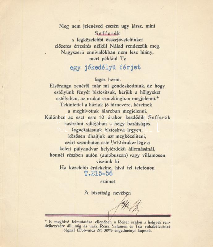 cca 1930-1940 Sefferék január 28-iki murijának humoros meghívója, 2 sz... https://www.darabanth.com/de/447-Fernauktion/447.0/Kunst-Dokumente-andere-Sammelgebiete/Drucksachen~1500006/cca-1930-1940-Sefferek-januar-28-iki-murijanak-humoros-meghivoja-2-sztl-lev~II2957868