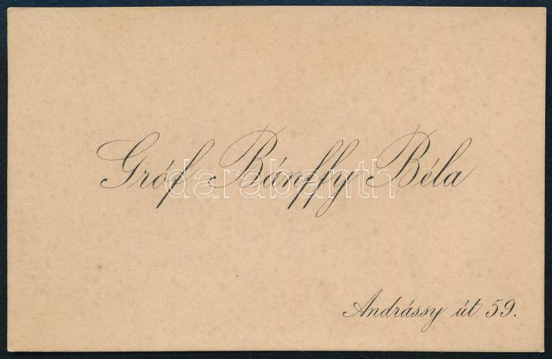 gróf Bánffy Béla névjegykártyája https://www.darabanth.com/de/447-Fernauktion/447.0/Kunst-Dokumente-andere-Sammelgebiete/Drucksachen~1500006/grof-Banffy-Bela-nevjegykartyaja~II2963734
