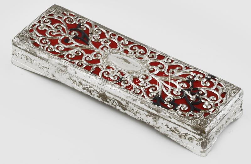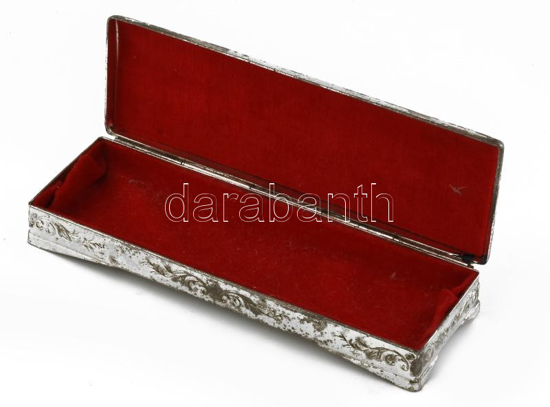 Fém díszdoboz szövet belsővel. 19x6 cm https://www.darabanth.com/de/447-Fernauktion/447.0/Kunst-Dokumente-andere-Sammelgebiete/Flohmarkt~2000103/Fem-diszdoboz-szovet-belsovel-19x6-cm~II2961597