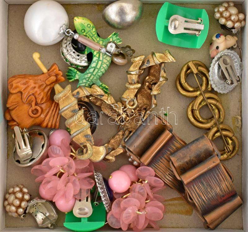 Kis doboznyi vegyes bizsu: brossok, fülklipszek, karkötők, stb. https://www.darabanth.com/de/447-Fernauktion/447.0/Kunst-Dokumente-andere-Sammelgebiete/Flohmarkt~2000103/Kis-doboznyi-vegyes-bizsu-brossok-fulklipszek-karkotok-stb~II2958108