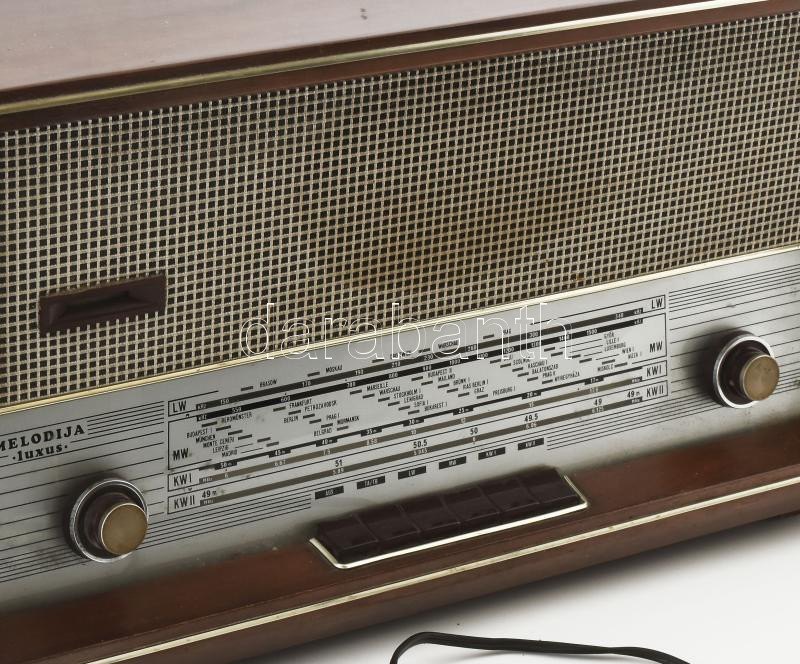 Melodija luxus rádió, szép állapotban, 53x30x22 cm https://www.darabanth.com/de/447-Fernauktion/447.0/Kunst-Dokumente-andere-Sammelgebiete/Flohmarkt~2000103/Melodija-luxus-radio-szep-allapotban-53x30x22-cm~II2958217