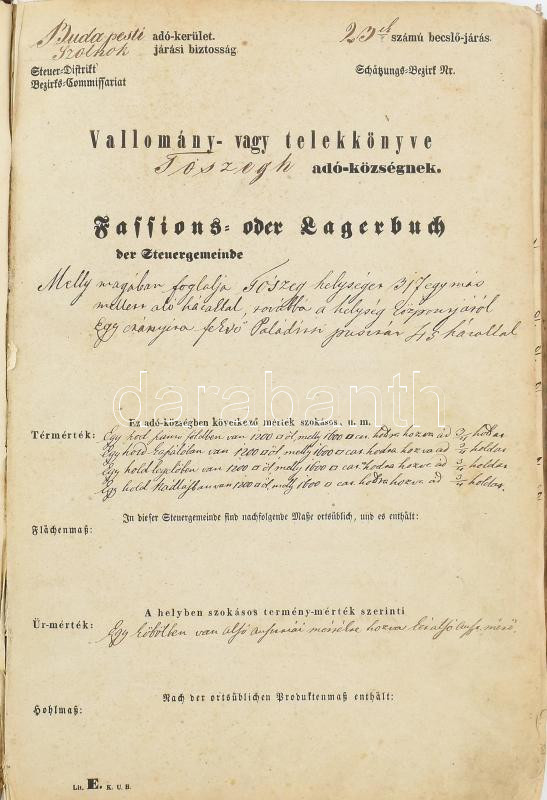 cca 1850 Tószeg község (Szolnok vármegye) telekkönyve. A birtokosok ne... https://www.darabanth.com/de/447-Fernauktion/447.0/Kunst-Dokumente-andere-Sammelgebiete/Historische-Dokumenten-Handschriften~2000111/cca-1850-Toszeg-kozseg-Szolnok-varmegye-telekkonyve-A-birtokosok-neveivel-reszletes-adato~II2964320