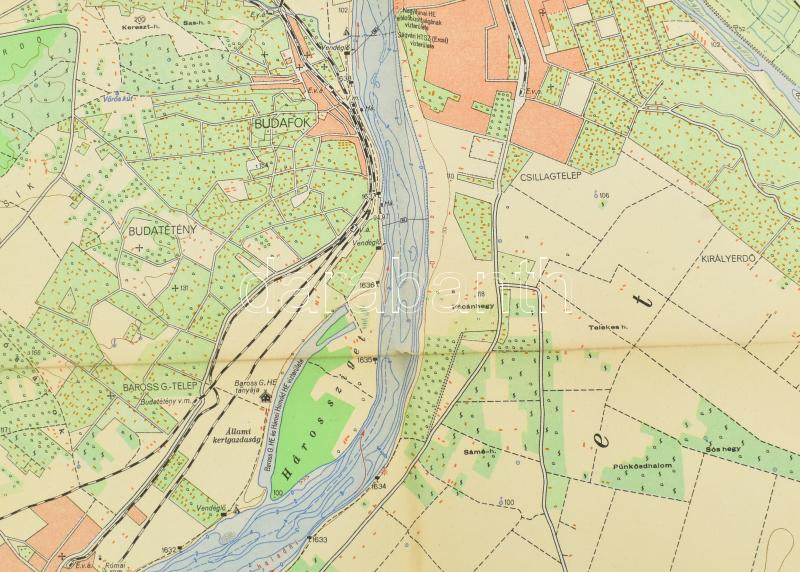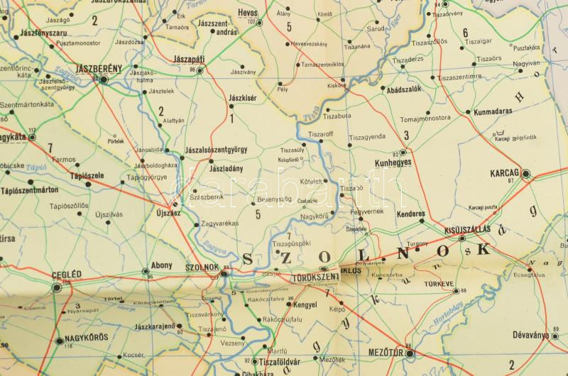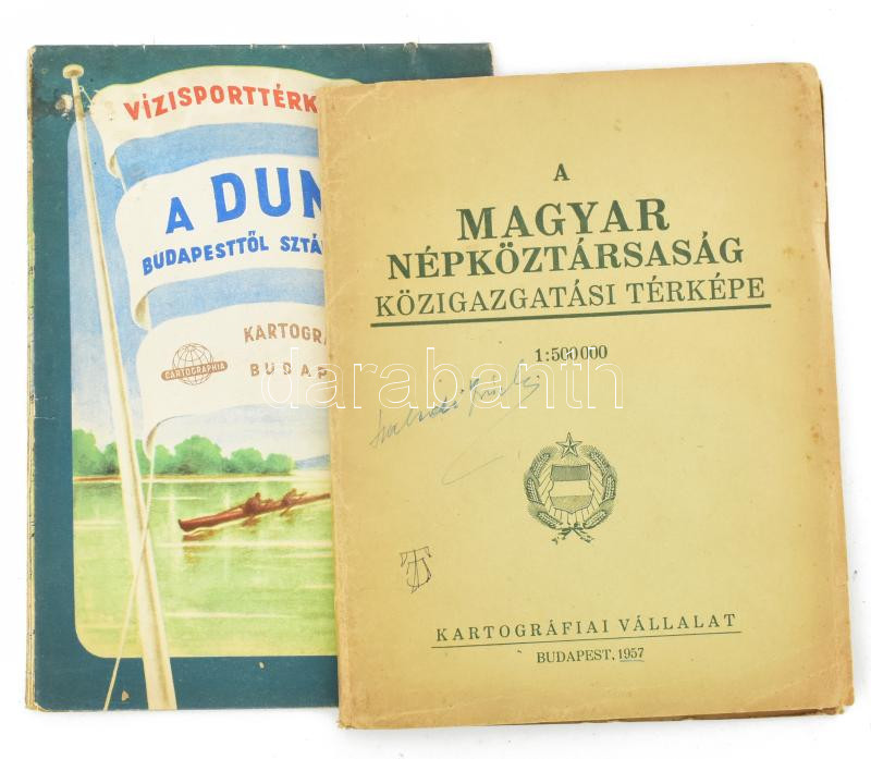 1957 A Magyar Népköztársaság közigazgatási térképe, 1 : 500.000, szélén kisebb szakadással, 115x75 cm + 1958 Vízisporttérkép - A Duna Budapesttől Sztálinvárosig, kétoldalas, 112,5x40 cm