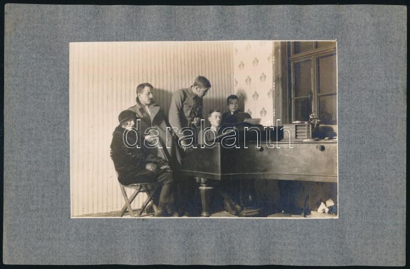 cca 1930 Zongorázó katona, kartonra kasírozott fotó, 10,5×16 cm https://www.darabanth.com/de/447-Fernauktion/447.0/Kunst-Dokumente-andere-Sammelgebiete/Militaria~1500001/cca-1930-Zongorazo-katona-kartonra-kasirozott-foto-10-5C39716-cm~II2960455