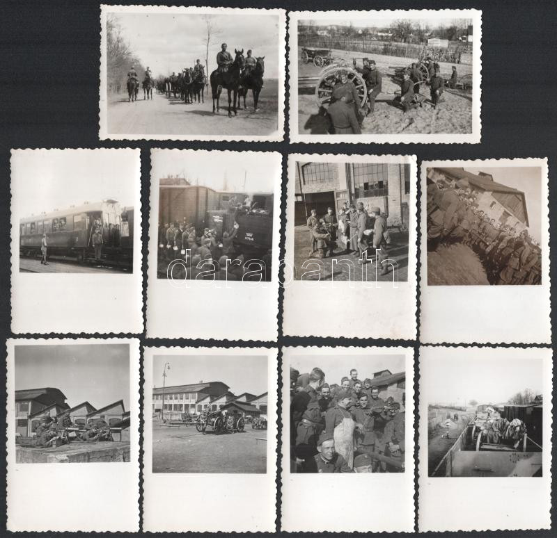 Beschreibung: cca 1940 M. kir. tüzérek géppuskával és ágyúval, 10 db fotó, 11×7 cm