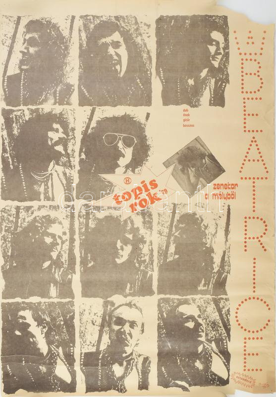 Beschreibung: 1979 Beatrice Topis Rok plakát. 50x70 cm Sarkán kis hiánnyal