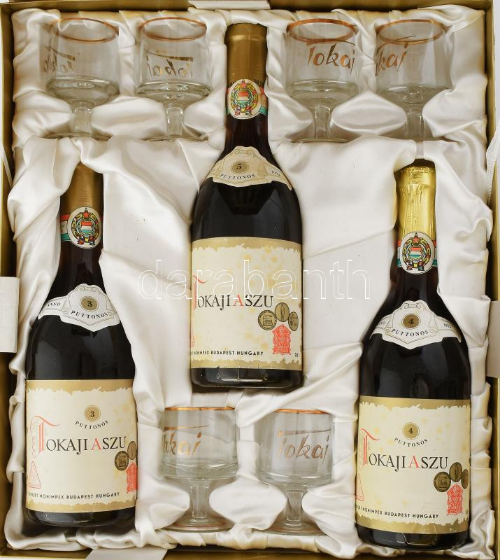 Tokaji aszú díszdoboz, össz. 3 palack bontatlan 1973-as évjáratú aszú ... https://www.darabanth.com/de/447-Fernauktion/447.0/Kunst-Dokumente-andere-Sammelgebiete/Vintage-Weine-Getranke~2000106/Tokaji-aszu-diszdoboz-ossz-3-palack-bontatlan-1973-as-evjaratu-aszu-Hungarovin-Monimpex-plus~II2964313