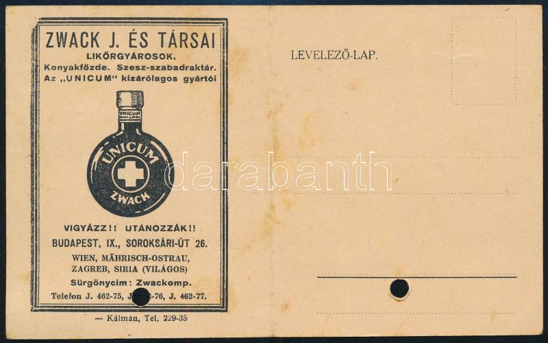 1934 Zwack J. és Társai Likőrgyárosok üzleti levelező-lap https://www.darabanth.com/de/447-Fernauktion/447.0/Kunst-Dokumente-andere-Sammelgebiete/Werbungen~2000113/1934-Zwack-J-es-Tarsai-Likorgyarosok-uzleti-levelezo-lap~II2963359
