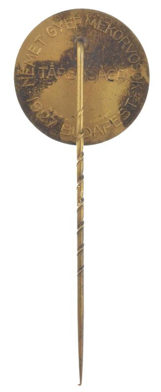 Beschreibung: 1927. "Német Gyermekorvosok Társasága Budapest" aranyozott fém kitűző, hátoldalán "Arkanzas Budapest" gyártói jelzéssel (23mm) T:AU patina