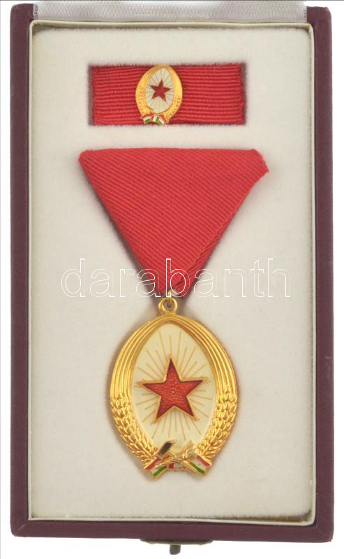 Beschreibung: 1964. "Munka Érdemrend" arany fokozata, zománcozott bronz kitüntetés mellszalagon, szalagsáv miniatűrrel, eredeti tokban T:AU