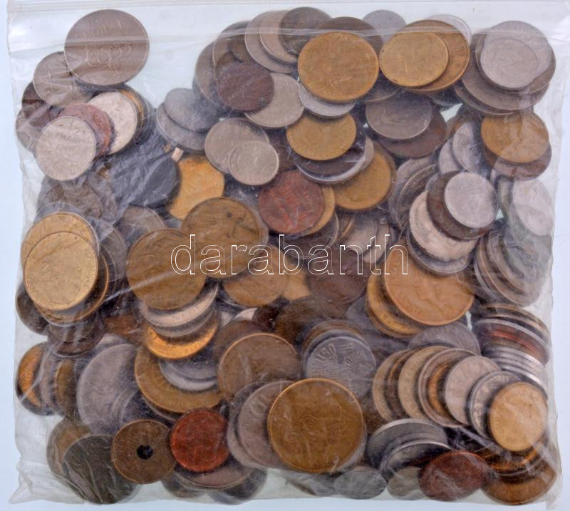 Beschreibung: Vegyes, magyar és külföldi érmetétel mintegy ~1kg súlyban T:vegyes Mixed, Hungarian and foreign coin lot (~1kg) C:mixed