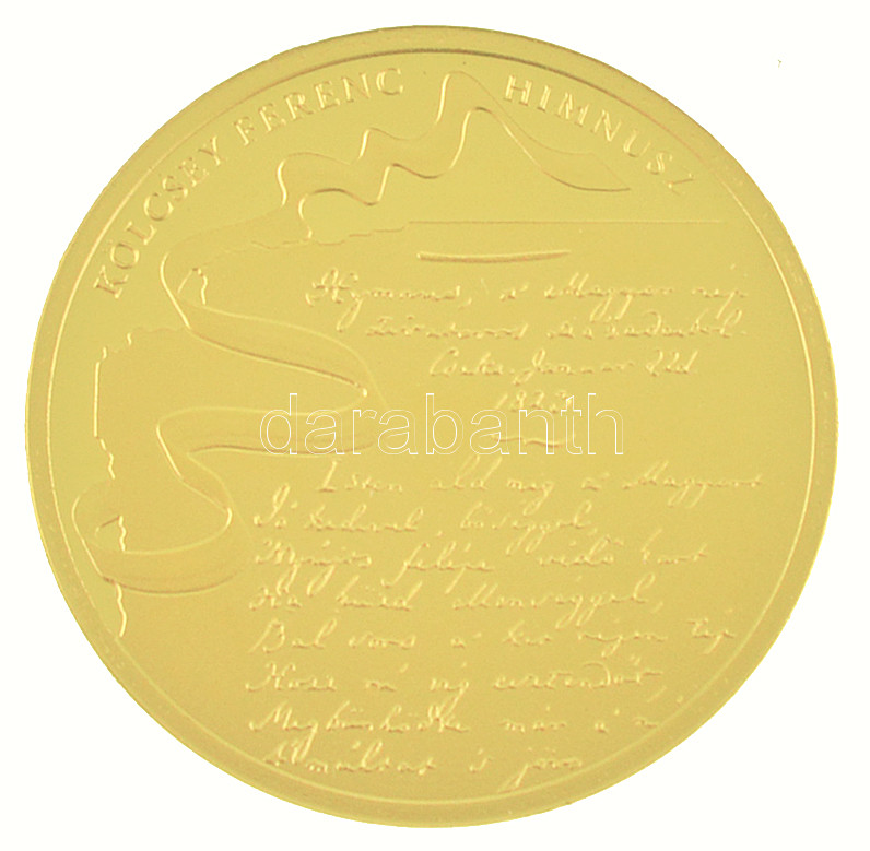 Fritz Mihály (1947-) 2013. "Kölcsey Ferenc - Himnusz" a Himnusz 190. évfordulójára készült jelzett Au emlékérem (1,24g/0.999/18mm) T:PP ujjlenyomat, karc