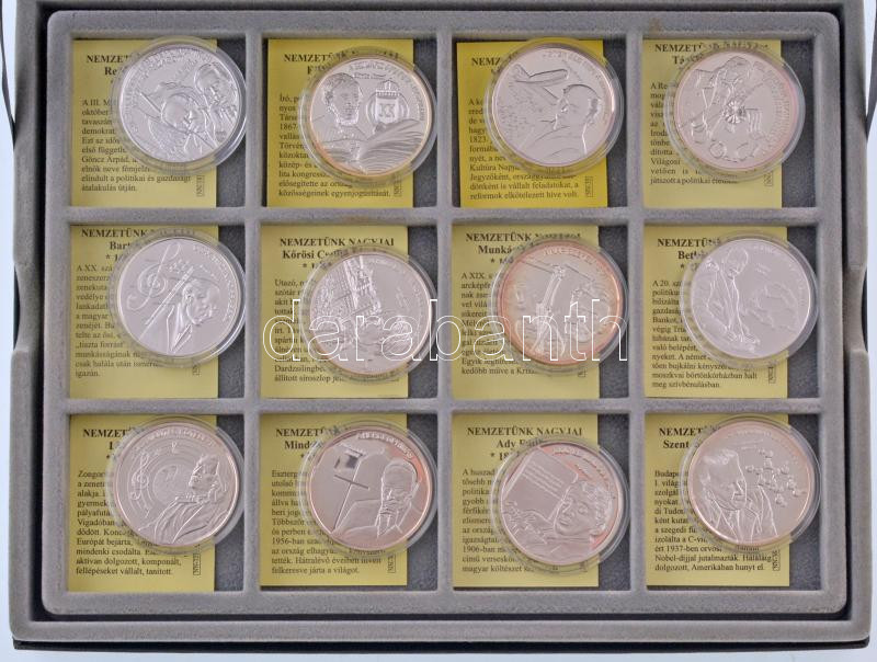 DN "Nemzetünk nagyjai" 23 darabos jelzett és jelzettlen, kétféle ezüsttartalmú Ag emlékérem sorozat kapszulában, tanúsítványokkal, kivehető tálcán, éremtartó kazettában (15g/0,333/35mm és 10,37g/0,999/35mm) T:PP közte patina