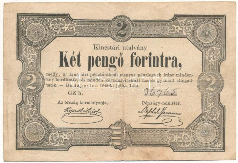 Beschreibung: 1849. 2Ft "Kincstári utalvány" kitöltött T:F kis beszakadás Adamo G108